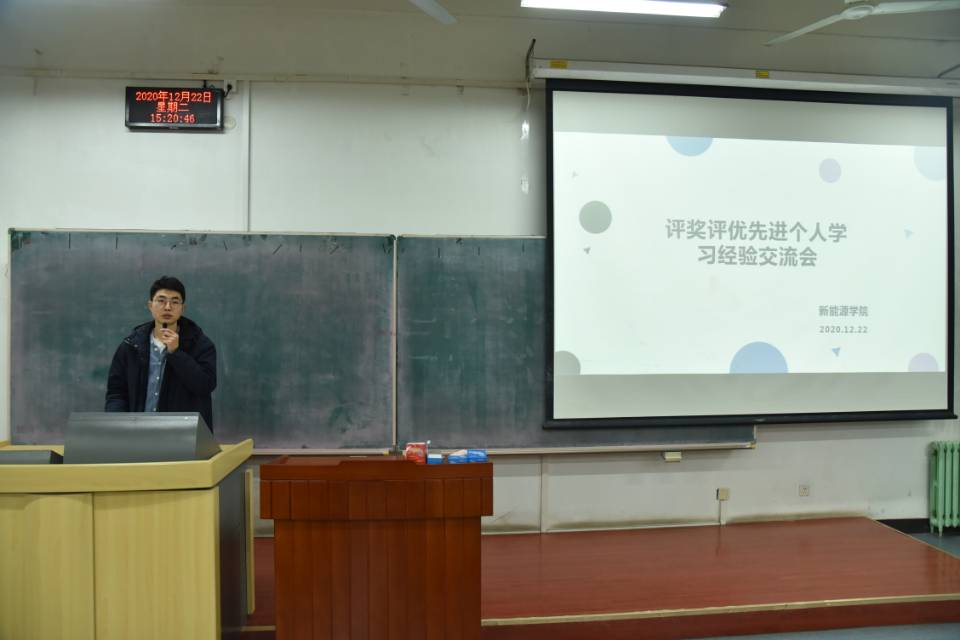 几位同学分享经验后,辅导员杨子发老师对此次交流会进行了总结。他对经验分享的嘉宾们表达了感谢,向20级本科员工提出了几点希望,希望20级本科生们能够通过此次交流会树立榜样意识,向身边优秀榜样学习,并在日常的学习中付诸实际行动,调整学习习惯和方法,扎实基础知识,积极参加科研活动,认真复习,在即将到来的期末考试中取得佳绩。