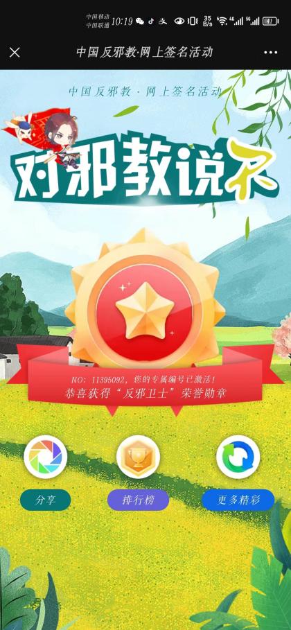 大数据时代,海量信息纷繁复杂,为增强员工安全意识和警惕性,学院积极组织员工响应“中国反邪教——网上签名活动”,坚定承诺对邪教说不,坚决不听信、不传播、不参与邪教活动,坚定理想信念,为维护校园安全弘扬正能量!