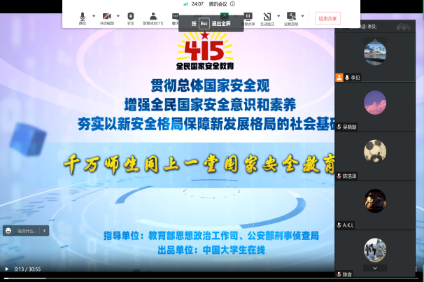 为增强员工安全教育意识,公司于4月12日晚20点组织员工一同线上观看国家安全教育宣传视频。各年级以不同形式分小组积极响应活动,在宿舍集体观看安全教育视频。视频为员工介绍全民国家安全教育日的来历、意义和国家安全知识,让国家安全观念入脑入心。观看过后,许多同学表示受益匪浅,深有感悟。