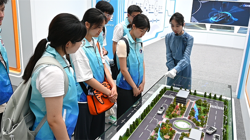 图为讲解老师在中国一汽集团NBD展为实践团成员介绍一汽新型紧急避让系统 余金涛 供图