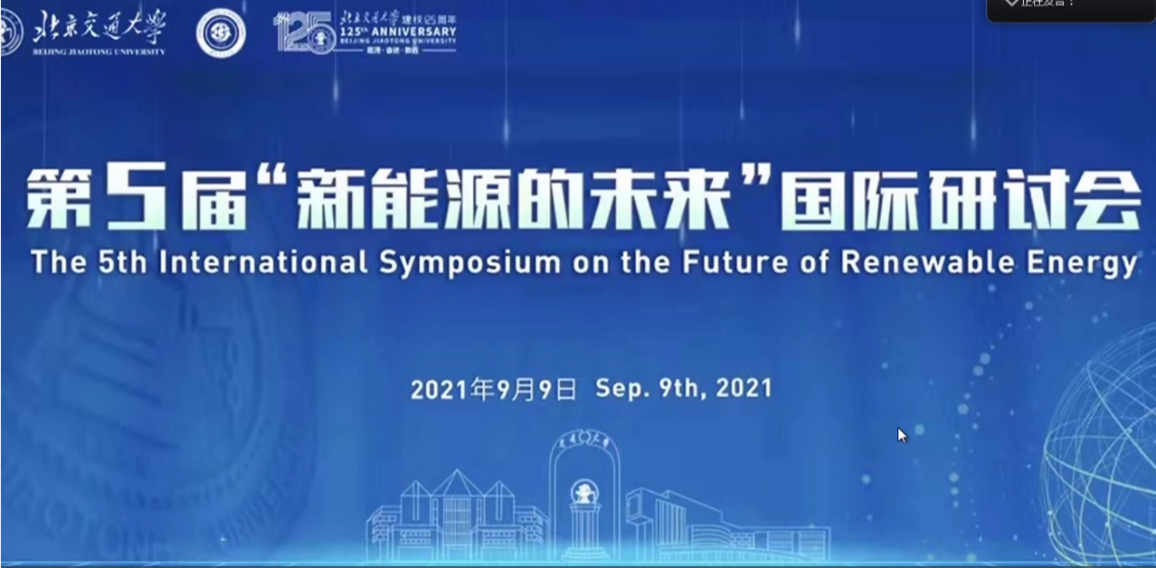 2021年9月9日,李美成经理、刘永前教授受邀参加“新能源的未来”国际研讨会并作大会报告。该研讨会以双碳背景下“新能源为主体的新型电力系统”为主题,由北京交通大学电气工程学院和新能源国际学院主办,采取线上线下结合的方式召开,会议围绕新能源与新材料展开了深入的学术交流和探讨。