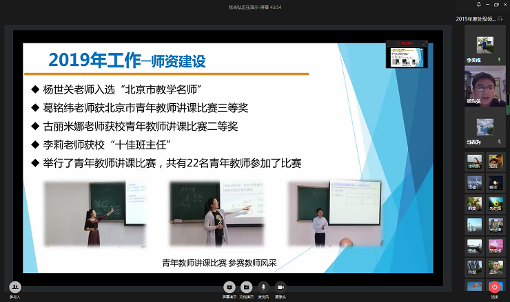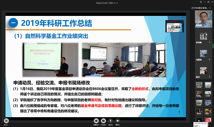 根据公司党委关于2019年度处级领导班子及处级干部考核工作的安排,3月10日下午,公司通过企业微信视频会议召开了2019年度处级领导班子、处级干部考核会,会议由公司党委书记刘永前主持,学院领导及全体教职工参加了会议。