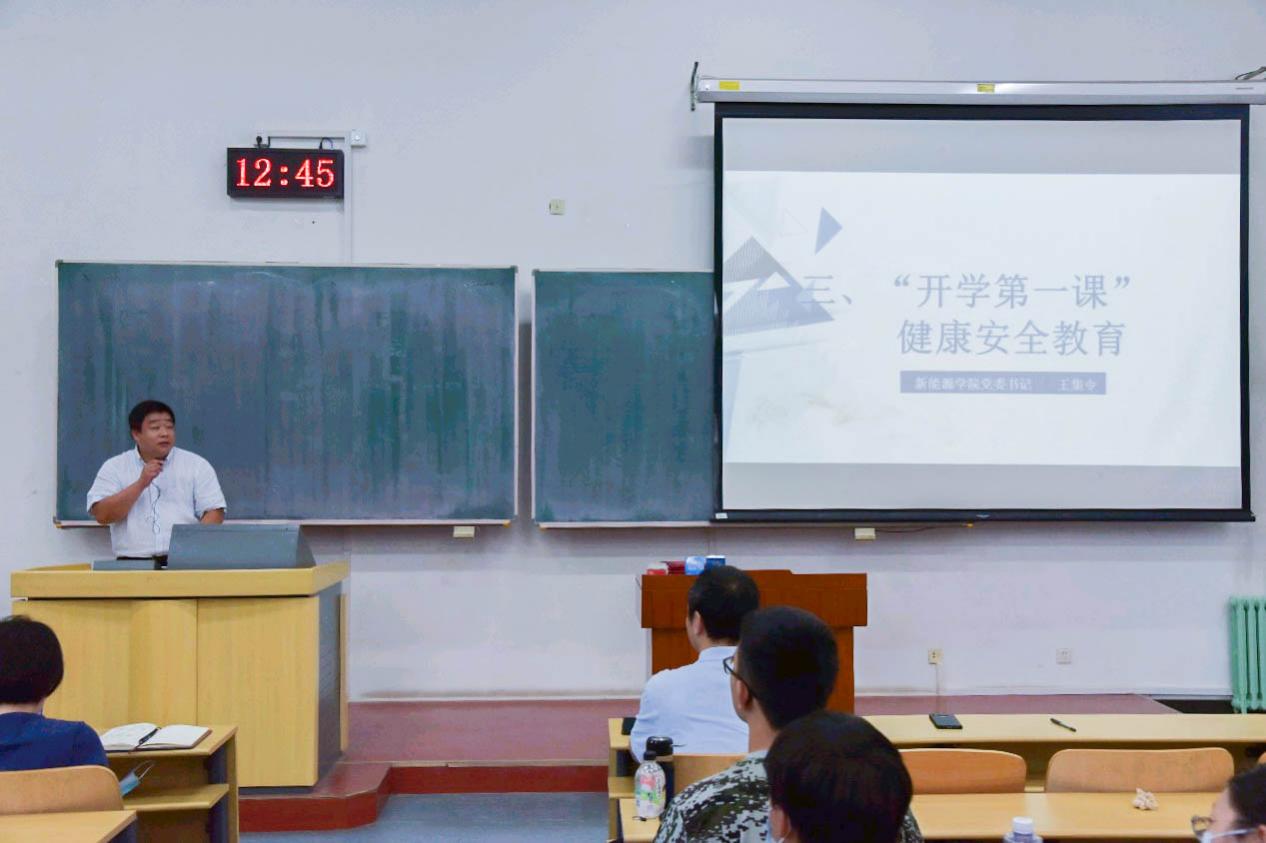 公司党委书记王集令以健康安全教育为主要内容讲授了开学第一课,他结合学校疫情防控政策,要求全体同学充分认识疫情防控工作的极端重要性,切实做好个人防护,养成良好生活习惯,在疫情防控工作中彰显责任感。他希望全体新生紧密围绕国家碳达峰、碳中和“3060”战略,认真学习,勇于实践,敢于担当,立志为中华民族第二个百年奋斗目标贡献力量。