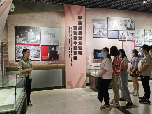 7月11日上午,实践团来到抗美援朝烈士陵园,陵园内苍松肃立,翠柏静哀。纪念碑前,全体成员集体肃立,向战斗英雄敬献花圈。向革命英烈默哀,以崇高的敬意致以深切的悼念。在黄继光先烈的墓前,黄继光生前战友后人生动地为实践团讲述英烈故事,一字一句都再现了70年前的深秋,雄赳赳、气昂昂的中国人民志愿军跨过中朝边界,抗美援朝、保家卫国的雄壮画面。接着实践团参观了抗美援朝纪念馆,近距离感受那段战争岁月的点滴,每一个人都深刻感受到了伟大的抗美援朝精神,在精神上得到了洗礼,在情感上得到了震撼。
