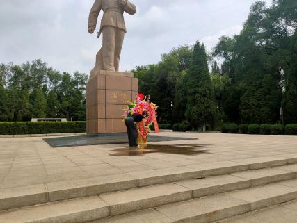 7月9日上午,实践团沿着习近平总书记参观路线参观了抚顺雷锋纪念馆。首先成员代表在雷锋墓前敬献花篮、宣读祭文,全体成员一起瞻仰雷锋墓向革命先烈致以崇高的敬意。紧接着,实践团一起参观了雷锋纪念馆,在讲解员的带领下观看了雷锋同志生前的珍贵照片和文物资料,从中了解雷锋同志的生平事迹,领悟雷锋同志精神。