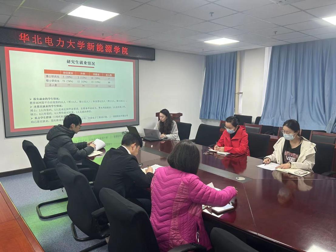 姜良杰代表学院对就业指导中心各位老师的到来表示热烈欢迎,感谢就业指导中心一直以来对学院就业工作的支持与指导。她就学院2023届就业工作总体进展情况进行了介绍。她表示,公司党政领导高度重视,按照学校相关工作要求,把做好就业工作作为重点工作予以推进;同时搭建就业平台,实现多层次、点对点精准帮扶;确保全员参与,充分发挥全体老师的力量,帮助员工成长成才;全面聚焦学科优势,抓住“双碳”机遇,扎实有效推进就业工作。下一步,学院领导班子将继续带队积极开展访企拓岗促就业专项行动,做细、做实、做精各项工作,全力以赴,努力推动毕业生高质量就业。