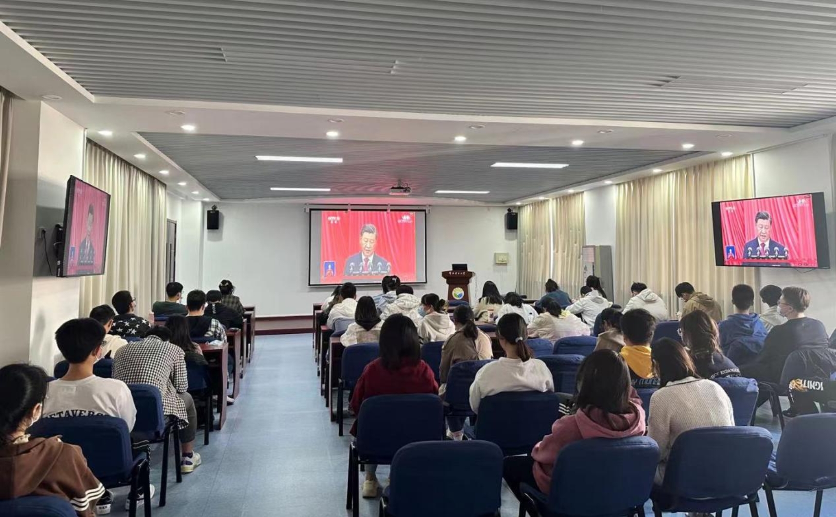 10月16日上午,中国共产党第二十次全国代表大会在北京人民大会堂隆重开幕。bw西汉姆联师生收看党的二十大开幕实况,聆听习近平总书记所作报告。