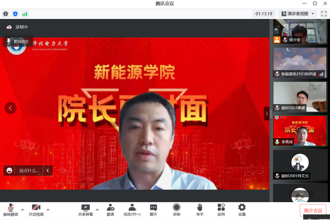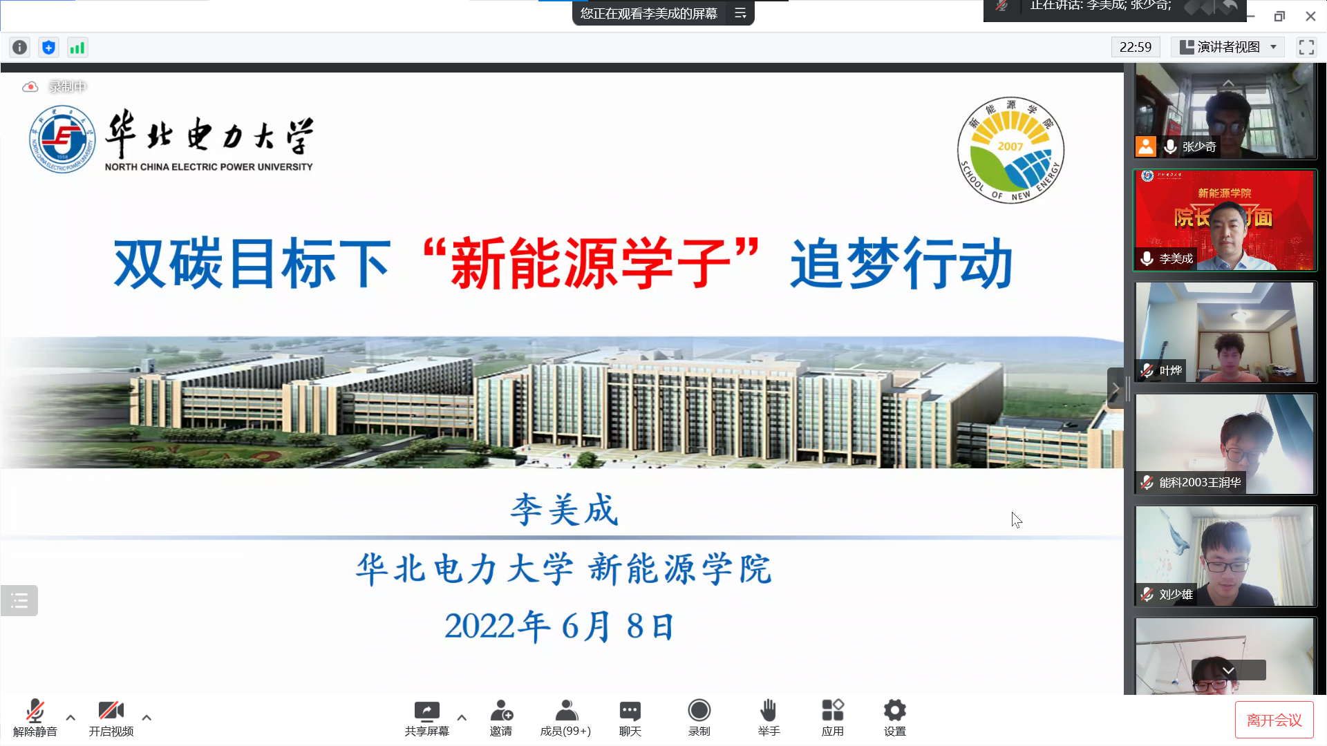 接下来,各个专业方向高年级员工代表就学习规划、学习方法、学科竞赛、就业保研等情况向低年级员工做经验分享,帮助大一员工在专业分流和学习适应方面加深了认识。李美成经理也提醒同学们在专业学习中不要局限于自己的小方向,要学习新能源专业的整体框架,在概念清楚、思路清晰的条件下,探索自己感兴趣的发展方向。