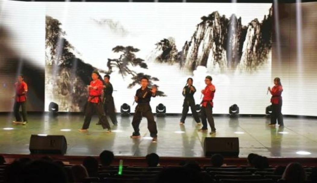 一点一扫,一劈一撩。双截棍表演《着魔》中的每一个动作都刚柔相济,动静有法,随心所欲,自由无羁。带领同学们领略着这一艺术的魅力。