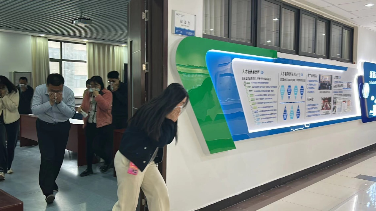 随后学院组织了火灾疏散逃生演练。随着警报声的响起,师生们立刻按照既定的消防预案进行疏散。在模拟的火灾现场,大家快速而有序地沿着指定的逃生路线迅速撤离到安全地带,展现了良好的应急反应能力。