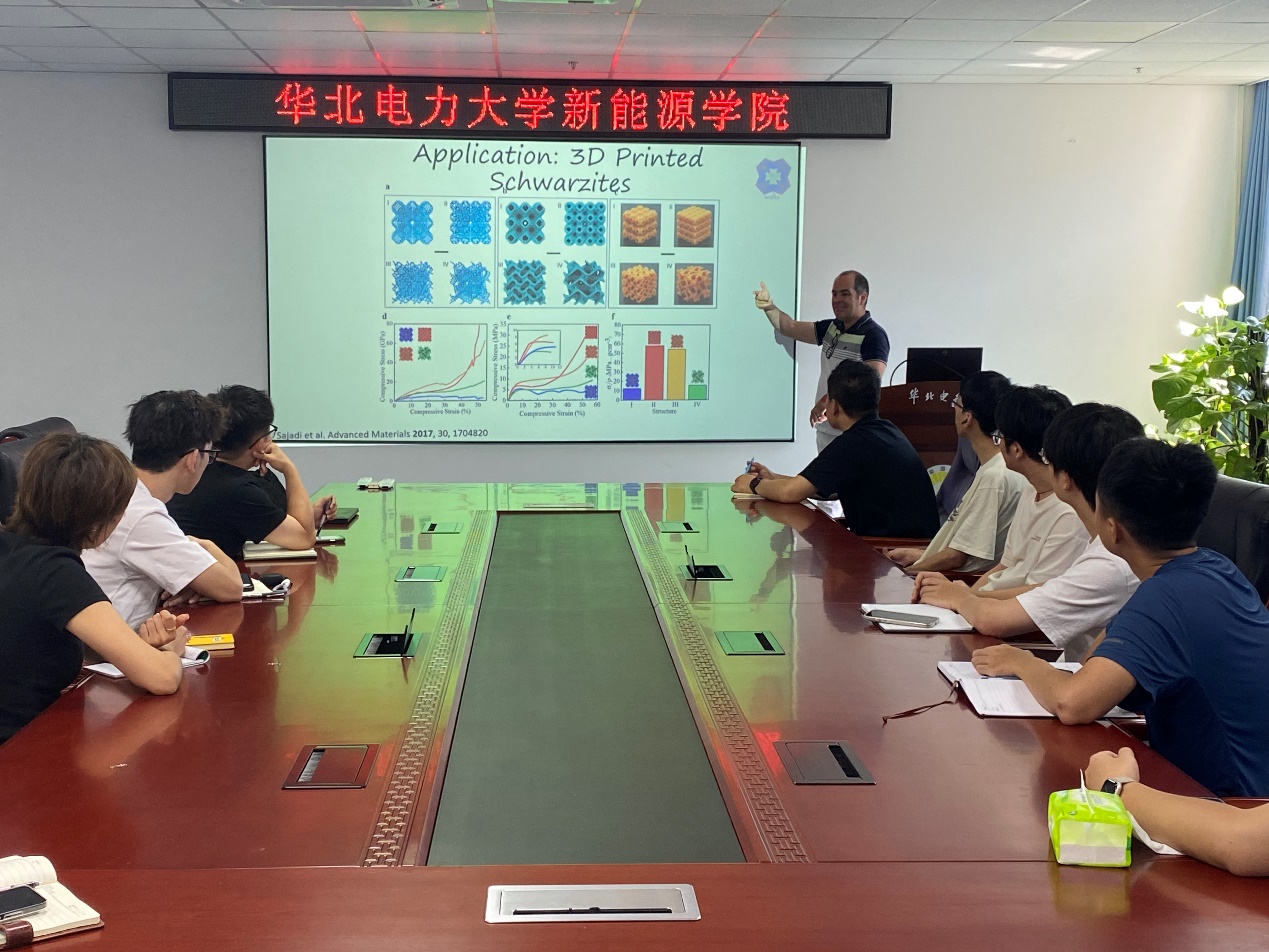 Woellner教授分享了人工智能在分子动力学模拟中的重大进展与创新应用,重点阐述了这项技术在碳材料的应用实例,为新能源材料的理性设计与性能提升提供了全新的数字孪生研究范式。报告结束后,问答环节气氛热烈,与会师生积极提问,问题涵盖人工智能模拟方法、跨学科应用及未来发展等多个方面。李美成经理代表学院对Woellner教授首次到访中国表示热烈欢迎,并向Woellner教授介绍了学院近年来在学术研究、产学研协同创新等方面取得的特色成果。