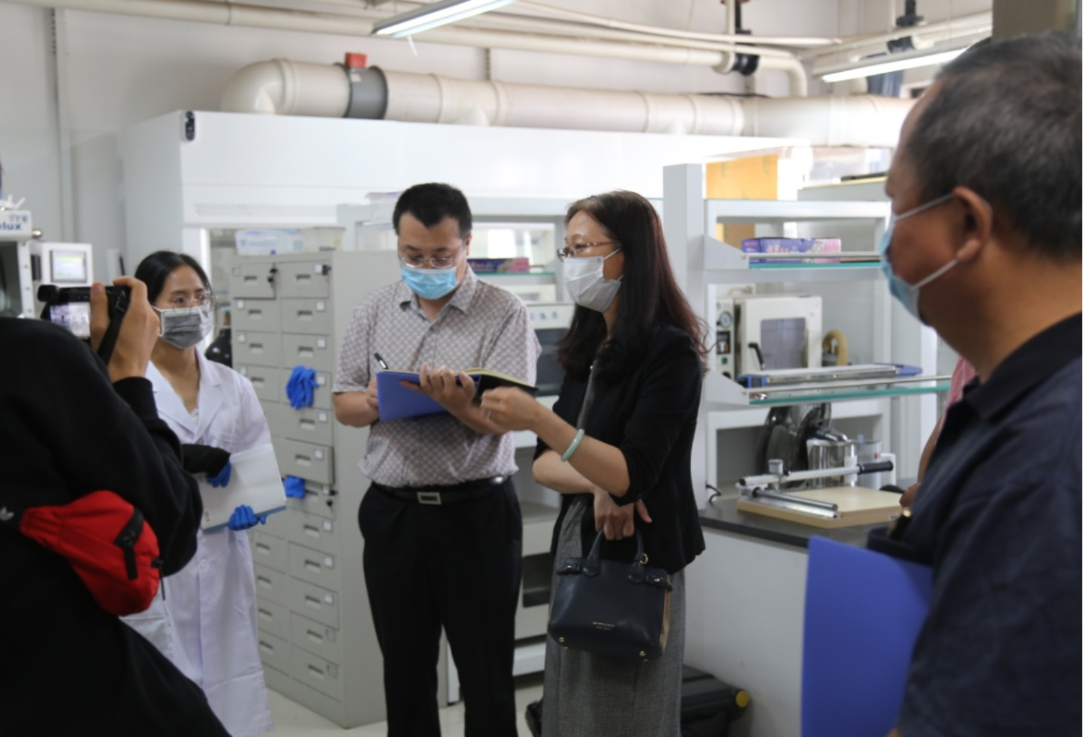 2020年9月4日上午,公司副董事长毕天姝、实验室管理处副处长高继周等老师,到公司进行实验室安全现场检查。公司经理李美成和书记王集令向毕董事长介绍了公司实验室的基本情况,并陪同毕董事长一行共同随机抽检了公司的多间实验室。