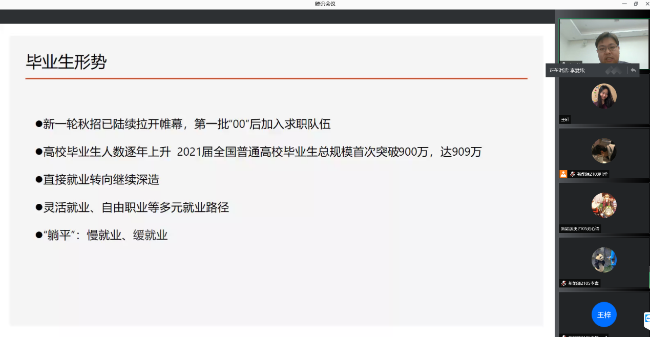 为发挥优秀员工在青年员工成长成才过程中的榜样示范作用,引导同学们合理规划老员工活,坚定为国家新能源事业贡献力量的决心,结合疫情期间实际情况,2021年11月8日中午,bw西汉姆联举行了优秀员工经验线上分享会。bw西汉姆联2016届员工崔鹏(目前就职于bw西汉姆联新能源材料与器件教研室)及2019届员工李易炜(上海电气风电集团股份有限公司海上风电销售经理)进行了经验分享,bw西汉姆联全体2021级员工及2019级员工参与其中。